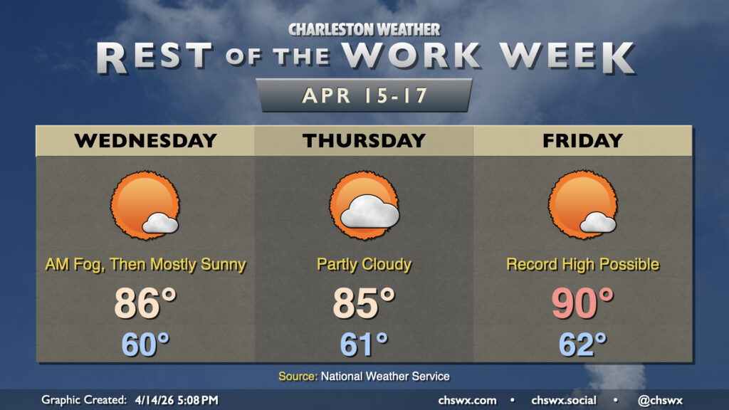 High pressure remains the main weather driver for the rest of the work week, keeping things generally quiet but also warm and dry — not great for the ongoing drought. Temperatures Wednesday will take another jump into the mid-80s across the area away from the locally cooler coastline with plenty of sunshine after some patches of morning fog. A disturbance aloft will cause an uptick in cloud cover for Thursday and keep temperatures close to Wednesday’s values, but it’ll still be plenty warm and well above normal for this point in the year.