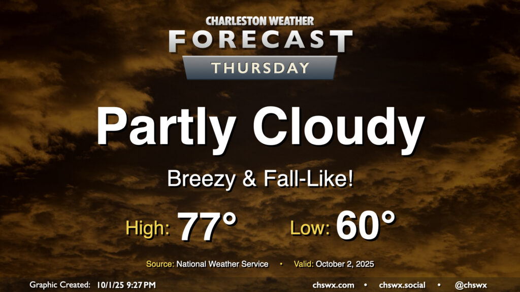 Thursday will give us a really nice taste of fall as cool high pressure wedges southward into the area. We’ll start the day with temperatures around 60°, warming to just the mid-70s under partly cloudy to mostly sunny skies. The northeasterly breeze will still be somewhat elevated, which may contribute to some minor tidal flooding around the 4:45 PM high tide. Otherwise, it’ll be an enjoyable day to get outside and touch some grass.