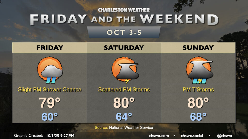 We’ll stay on the cool and somewhat breezy side with winds out of the northeast, and this will continue to drive the risk for minor coastal flooding with the late afternoon and evening high tides. Temperatures will still be on the cool side of normal; expect another morning of seasonably crisp lows around 60° on Friday before warming to the upper 70s in the afternoon. We return to the low 80s for Saturday and Sunday, with low temperatures heading up to the mid-60s Saturday and upper 60s on Sunday, indicative of the warmer and more moist airmass that’ll be moving back in.