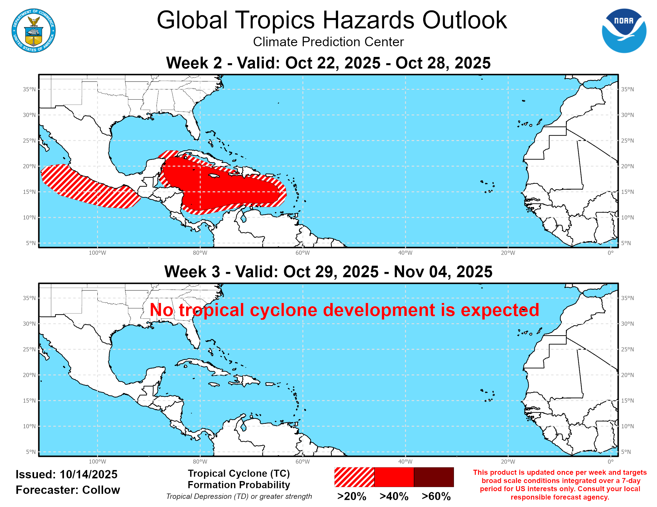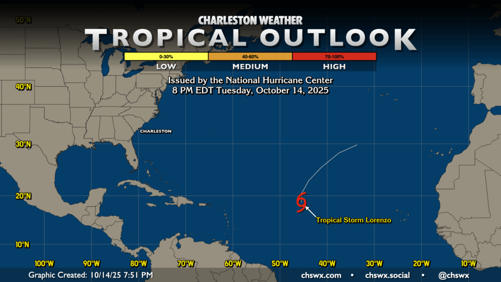 Aside from distant Tropical Storm Lorenzo, which poses no threat to the continental US, the tropics are quiet. Looking at the extended tropical outlook, we might see something try to form in the Caribbean getting into next week, but other than that, things really start to calm down as we head into the end of the month. Hurricane season continues through the end of November, though, so we’ll maintain watch while you enjoy the beautiful fall weather!
