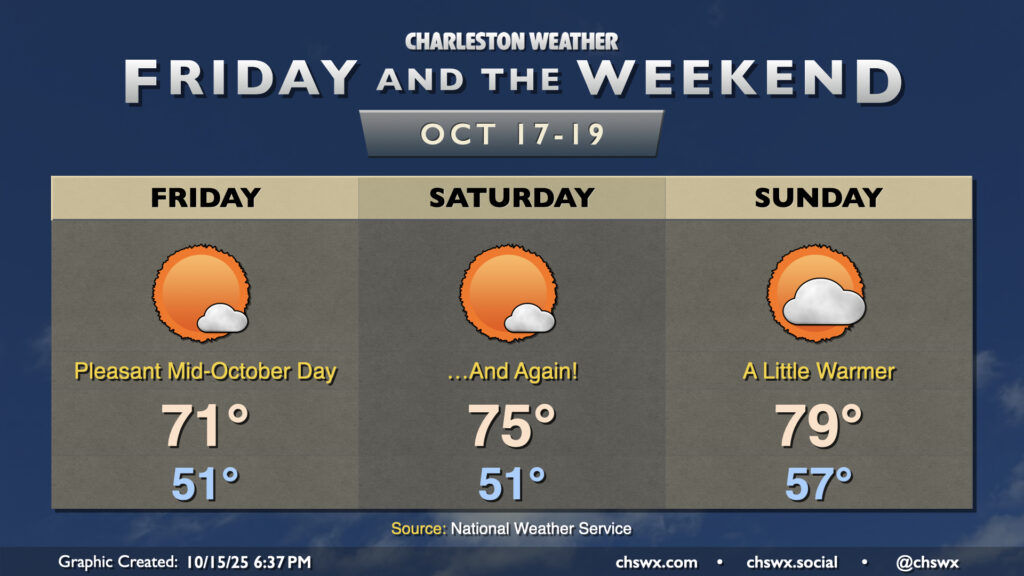 Our weather winning streak continues for Friday and the weekend as high pressure remains the dominant weather feature through Sunday. Temperatures will run even cooler on Friday than they did Thursday, with lows in the low 50s warming to the low 70s in the afternoon despite plenty of sunshine. We’ll get off to a similarly cool start Saturday, but highs will rebound into the mid-70s. The warming trend continues Sunday as high pressure shifts offshore, with lows in the upper 50s warming to highs near 80° in the afternoon. A stray shower may be possible very late Sunday night into early Monday morning as another front moves by, but moisture is limited and shouldn’t be too much of an issue.