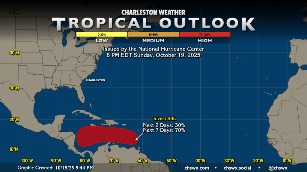 Yes, hurricane season continues: There’s one area of interest in the southern Caribbean that has a high chance of developing into a tropical cyclone this week as it moves westward. As usual at this stage, there’s high uncertainty about how strong it gets and where it ends up. There does appear to be the risk for some impacts to Cuba, Jamaica, Hispaniola, and Puerto Rico later this week into early next, but we’ll keep an eye on it. Ultimately, though, this does not appear to be a storm we need to worry about at this juncture, and the overall pattern strongly supports us missing out on direct impacts, with perhaps just some waves and rip currents to contend with at some point in the next couple weeks.