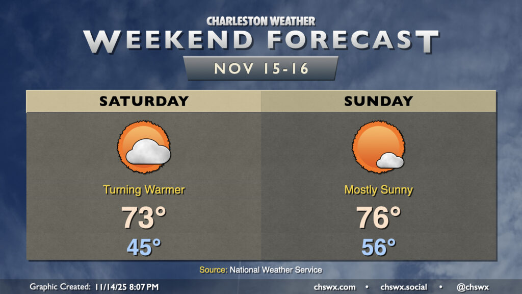 After a brief cooldown on Friday, temperatures head back above normal for the weekend as high pressure remains the dominant weather feature across the area. We’ll see the high that’s overhead as of Friday evening slip southward, sending wind directions a little more westerly to southwesterly, kicking temperatures back into the low-to-mid-70s on Saturday. Compressional heating ahead of an advancing cold front will send highs on Sunday solidly into the mid-70s after a warmer start in the mid-50s. This frontal passage once again looks dry thanks to a dearth of moisture; in fact, rain chances remain slim well into next week.