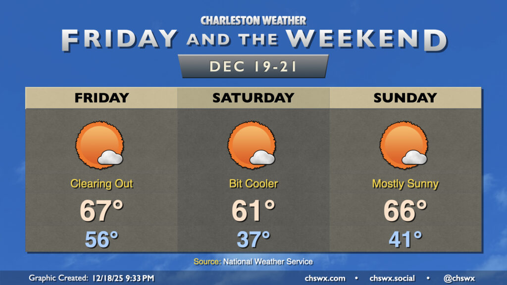 We’ll keep the sunshine going well into next week and through Christmas. Monday will be a bit on the chilly side, but by the time we reach Christmas Eve, temperatures are back into the 60s and flirting with 70°.