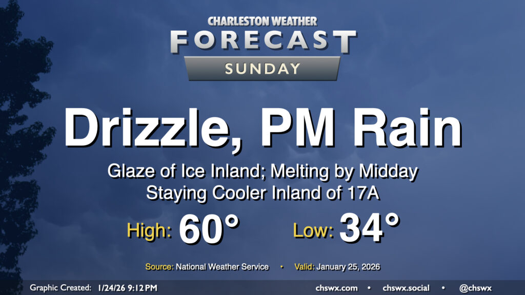 Cooler air will continue to overspread the area tonight, and warm air overrunning the shallow layer of cold air could help to generate some freezing rain or drizzle generally inland of 17-A overnight into tomorrow morning. Folks in inland Berkeley and Dorchester counties remain under a Winter Weather Advisory until 1PM Sunday for this threat. The main concerns will be a glaze of ice on elevated surfaces, perhaps including bridges and overpasses. It continues to appear that we should stay liquid in Charleston County, especially near the coast, so no Ravalanche redux is expected this go-around. As NWS put it in a briefing call this evening, this is a nuisance event rather than a more impactful event.