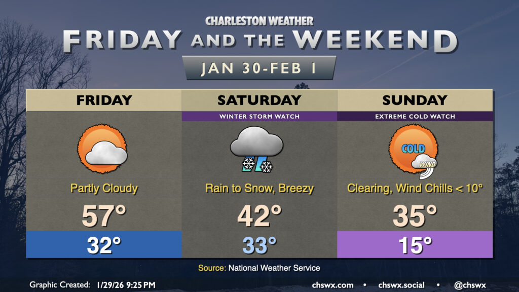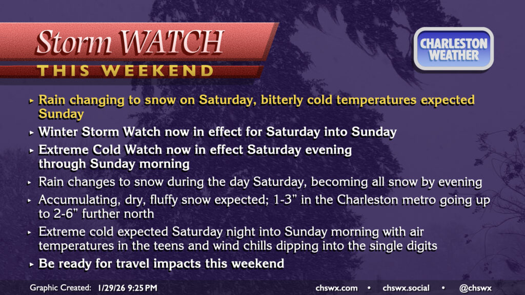 Finally, a really interesting stat from the National Weather Service in Charleston prompted by a question in the NWS partners chat from Bill Walsh, Live 5 chief meteorologist: The only other time there have been consecutive years with measurable snowfall in Charleston were 1988 and 1989. In 1988, we measured 0.4″; in 1989, we measured 8.9″ of snow (most of that coming with the historic snowstorm of December 22-24). It looks like we’ll tie that streak after Saturday, barring a major, unforeseen change.