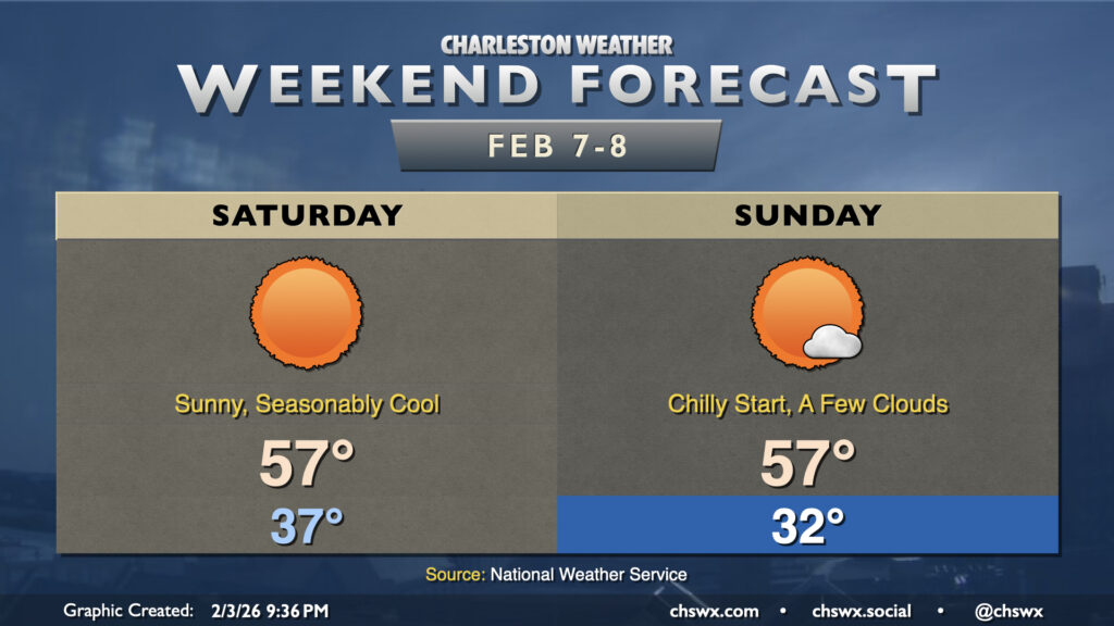 While below-normal temperatures continue this weekend, it won’t be quite as below-normal as we’ve seen, nor will be there any concerns for winter weather, much less any atmospheric inclemency for the first time in a few weekends. Highs each day peak in the mid-to-upper 50s, while Saturday starts a little warmer than Sunday does courtesy of a dry front that moves by overnight Saturday. By the start of the new work week, we are starting to sniff out 60s highs once again as quiet weather continues.
