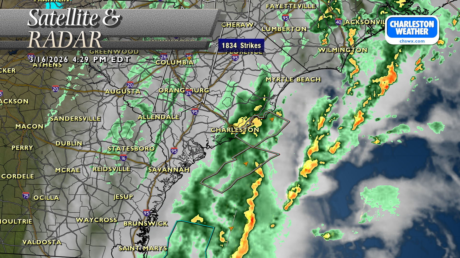 A thin line of showers trailing south through Columbia, Orangeburg, and Allendale depicts the location of the cold front. This should get through roughly around sunset. Meanwhile, much-needed rain continues to fall and will push offshore soon.