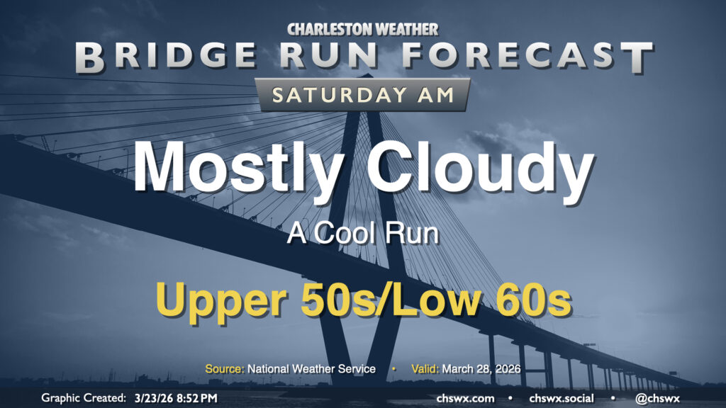 Another front will swing through early Saturday, which will keep temperatures in check for the Bridge Run. Expect a generally cool run this go-around, with temperatures in the mid-to-upper 50s expected at start time, warming to the low-to-mid-60s by noon or so with plenty of cloud cover. There’s an outside shot that precipitation could be a factor with the nearby front, but so far probabilities appear quite low. Stay tuned for updates this week!