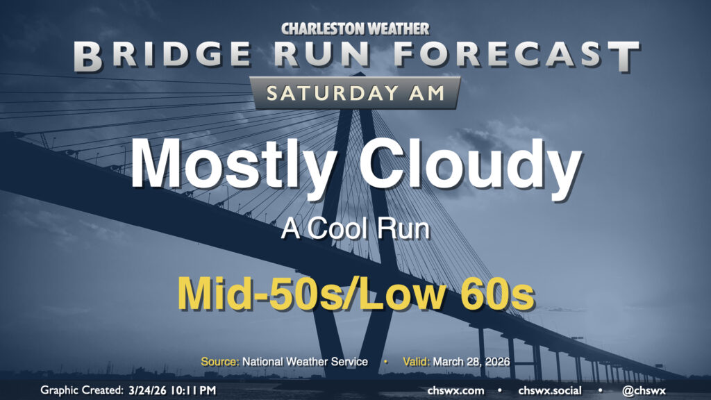 By Bridge Run morning, though, the bottom will once again fall out of the mercury, and temperatures will drop into the mid-50s to low 60s for the race. Highs Saturday will only peak in the mid-to-upper 60s as another high pressure wedge takes shape, so be ready for a bit of a cool post-race afternoon out and about downtown (if that’s your plan, anyway).
