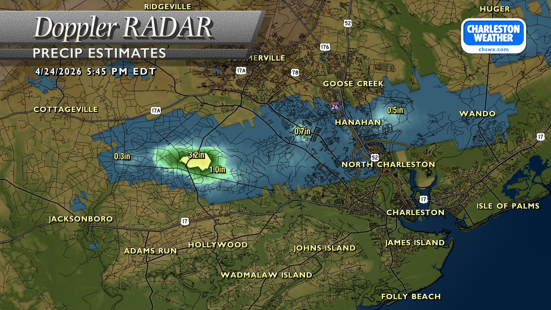 A few spots likely got some measurable rain from the earlier seabreeze activity, which has since dissipated. Would love to know if anyone has a gauge near Delemar Crossroads to verify the radar estimate of 1-3” in that particular part of southern Dorchester!