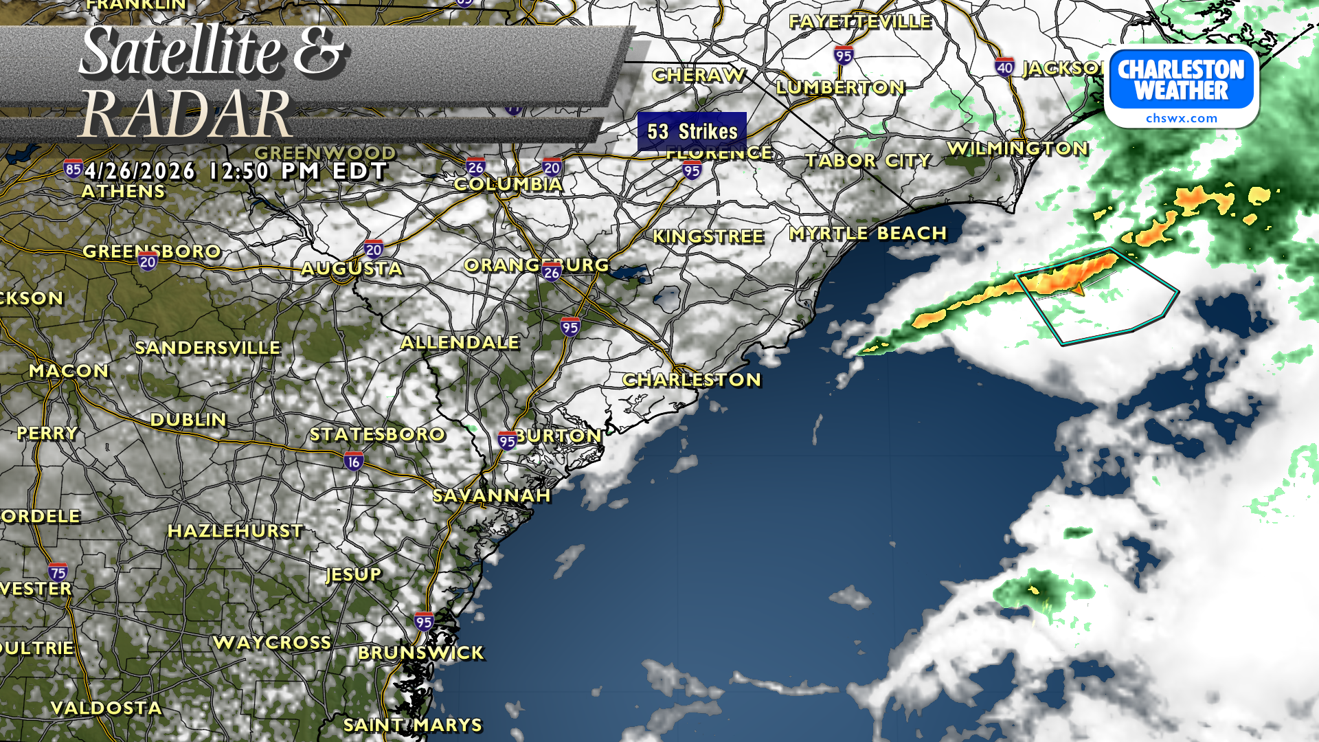 Mostly cloudy skies persist across the area this afternoon. A few light returns are noted on radar as we head toward 1PM. Best chance for any rain will be over the next few hours before a front clears the area from north to south.