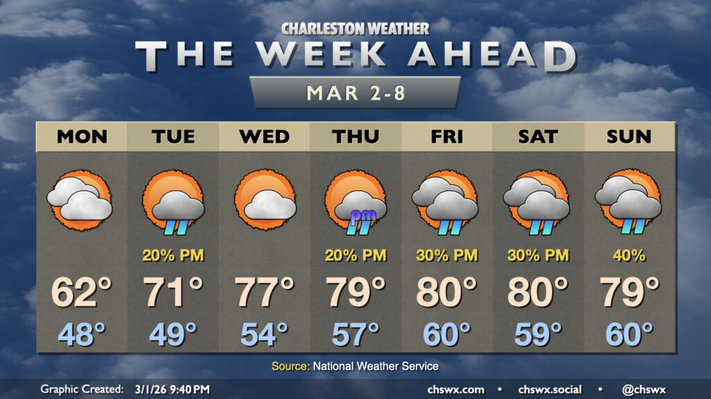 Winter makes a brief return to the Lowcountry to start the final week of February, but temperatures look to rebound for the second half of the week, albeit with some shower chances.