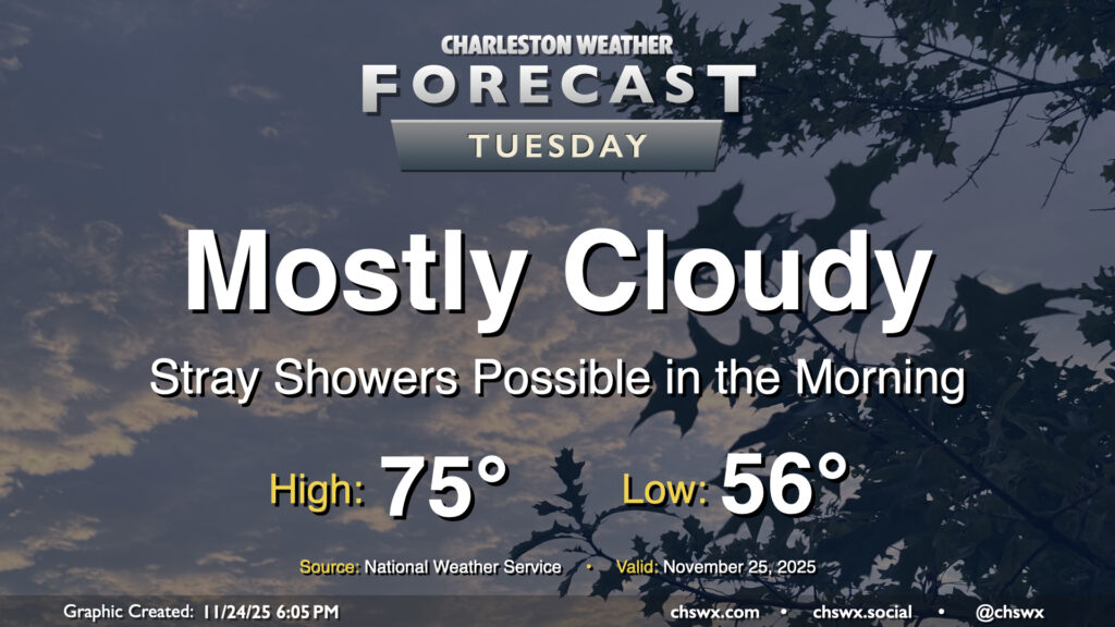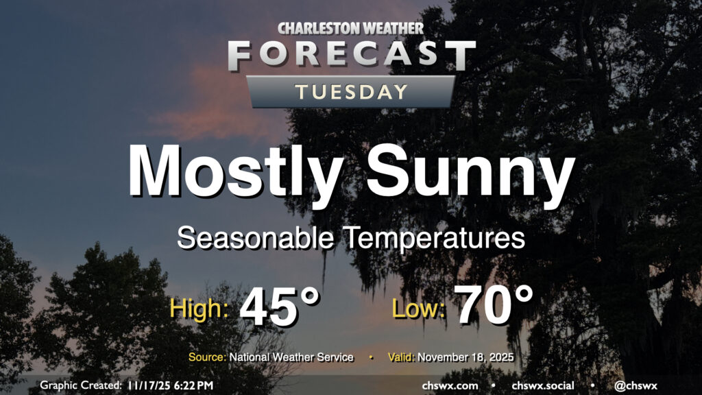 A cold front will swing through overnight, scouring out the clouds and ushering in drier high pressure behind it. It’ll be great to see the sun, which will make highs in the mid-60s feel quite nice. We’ll have a bit of a westerly breeze in the wake of the front, so keep that in mind if you have any plans to dine al fresco, but otherwise, it looks like a really good day of weather across the Lowcountry.