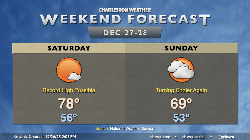 Saturday’s lows will once again begin in the upper 40s (with some mid-40s inland), warming to the low 70s in the afternoon under partly cloudy skies. Cloud cover will continue to thicken on Sunday as moisture return continues; this will lead to a warmer start in the mid-50s before highs peak around 70-71° once again under mostly cloudy skies. Showers and maybe even some rumbles of thunder will be possible beginning Sunday evening, so keep that in mind as you make your weekend plans.