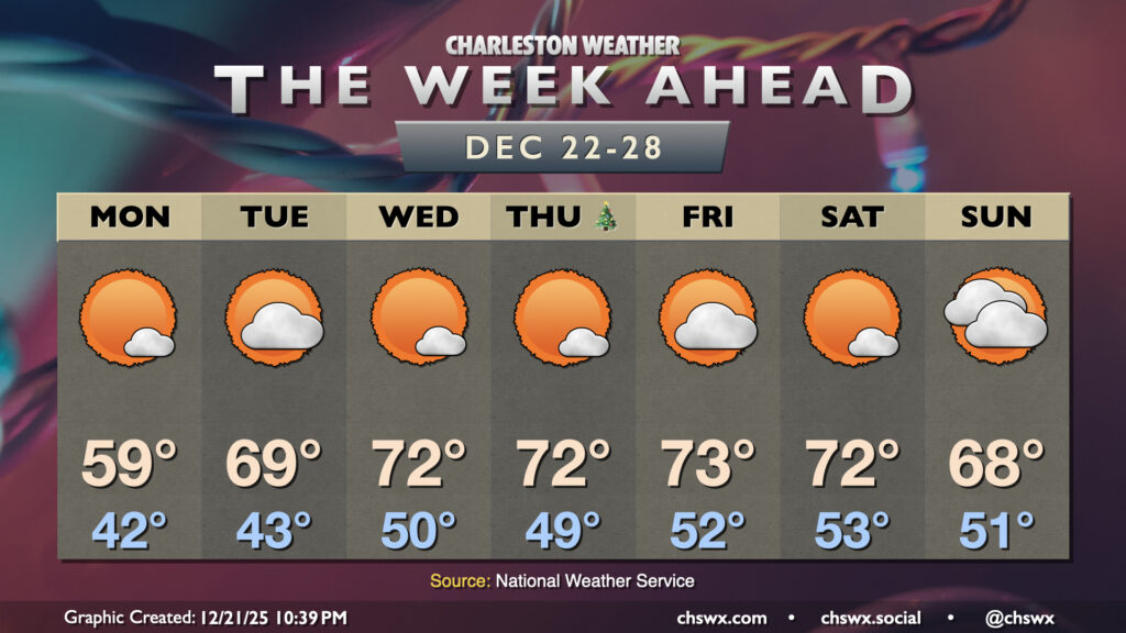 Much-needed rain and below-normal temperatures are in store for the week ahead as a series of fronts affect the area. We’ll also see the risk for some tidal flooding in the mornings beginning Tuesday courtesy of the upcoming full moon.