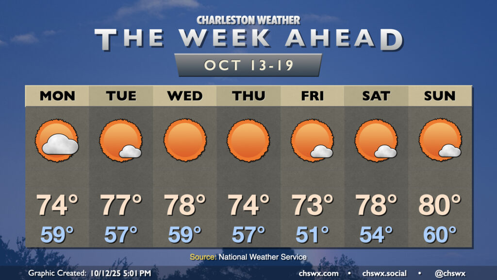 With Imelda departing to our east, high pressure will wedge down across the area, ushering in some cooler and drier air that’ll be particularly noticeable on Thursday. Shower chances return for Friday heading into the weekend, though.